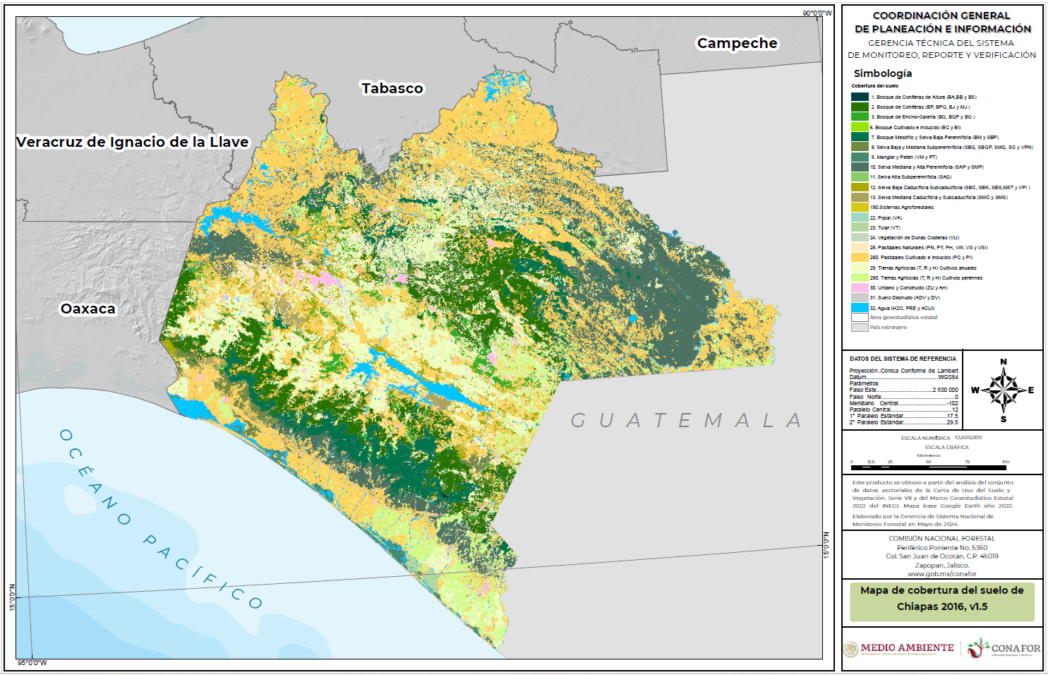 - Mapa en formato PDF de la cobertura del suelo de Chiapas 2016 V 1.5