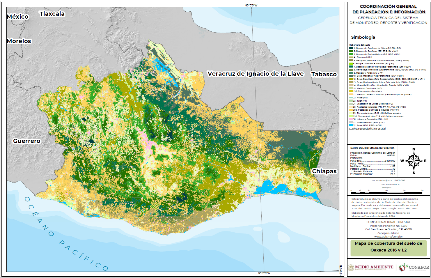 - Mapa en formato PDF de la cobertura del suelo de Oaxaca 2016, v1.2